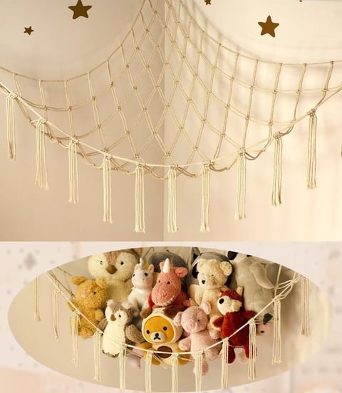 Transform your child's room into a tidy haven with our large stuffed animal holder, designed to keep a crowd of cuddly friends neatly stored and off the floor. Crafted from premium cotton, our macrame toy hammocks are not only soft and eco-friendly but also super durable, ensuring they withstand the test of time and use. Whether your child has a few favorite plush toys or a whole collection, our hammocks are available in 2 convenient sizes, including an XL Large option for those with an abundance of stuffed animals. With 11 vibrant colors to choose from, you can select the perfect hue to match your child's unique personality and room décor.